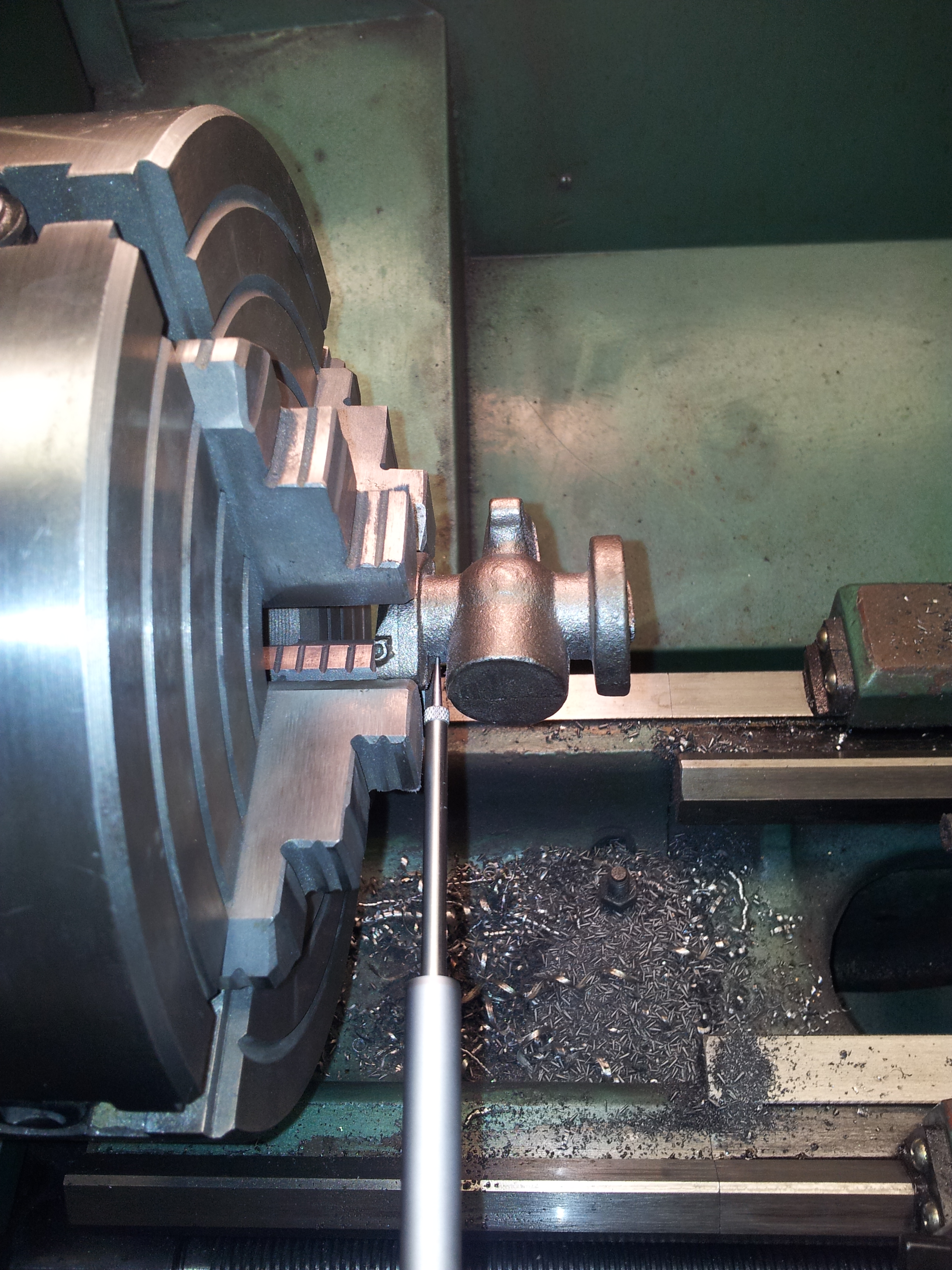 Cut the OD to size and cut the valve slope. Yes, I said 46deg.